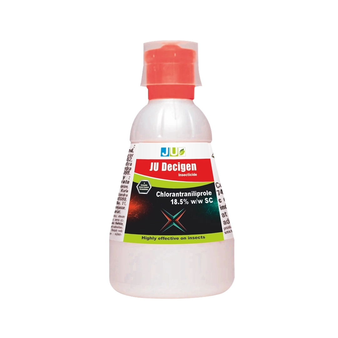 JU Decigen is a powerful insecticide containing Chlorantraniliprole 18.5% SC, which has a unique muscle-paralysis action through Systemic, Contact, and Stomach action. It provides strong control over a wide range of lepidopteran and other pests like stem borers, bollworms, caterpillars, termites, and pod borers. Ju Decigen insecticide has a powerful formula that stops pest feeding within minutes of application. It is safe for crops and non-target organisms and helps provide improved yields.