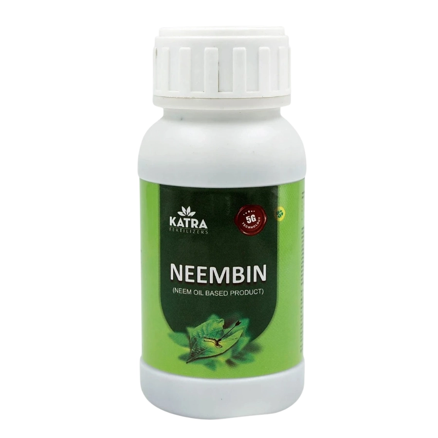 Katra NEEMBIN Azadirachtin 0.3% EC is a neem-based botanical insecticide formulated from neem seed kernels containing 3000 PPM of Azadirachtin. It works as a powerful natural pest controller with multiple modes of action — anti-feedant, repellent, and insect growth regulator. NEEMBIN is safe for beneficial organisms, eco-friendly, and suitable for organic farming. It ensures effective pest management while promoting healthy crop growth and higher yields.