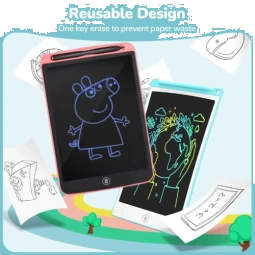 LCD Portable Writing Pad 8.5 Inch LCD Writing Tablet offers an engaging way for kids to learn, draw, and express creativity. With a pressure-sensitive LCD screen, it mimics natural handwriting and allows instant erasing with a single button. The tablet’s secure battery compartment ensures child safety, while its slim, lightweight design makes it easy to carry anywhere. It’s a reusable, eco-friendly alternative to paper — perfect for notes, sketches, dictation, or doodles.