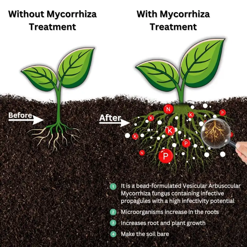 Improves Water Uptake: The fungal microfilaments extend deep into the soil, helping plants absorb water more efficiently—especially beneficial in drought conditions.