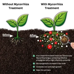 Enhances Nutrient Absorption: Myco Amrut forms a symbiotic relationship with plant roots, significantly increasing the uptake of phosphorus, zinc, and other essential micronutrients.