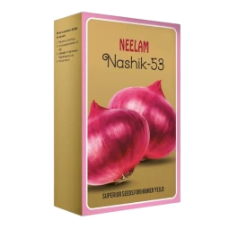 Nashik-53 Onion Seeds, also known as Nasik N-53, are considered the “king” of onion varieties in India due to their popularity, high yield, and market acceptance. This dark red onion hybrid is widely cultivated by farmers across the country and internationally. With a germination rate of 70% and a potential yield of 20-30 tons per acre, it ensures profitable farming. The variety is suitable for Kharif, Rabi, and Summer sowing, making it flexible across different growing conditions. The seeds are Thiram treated for better protection and healthier crop establishment.