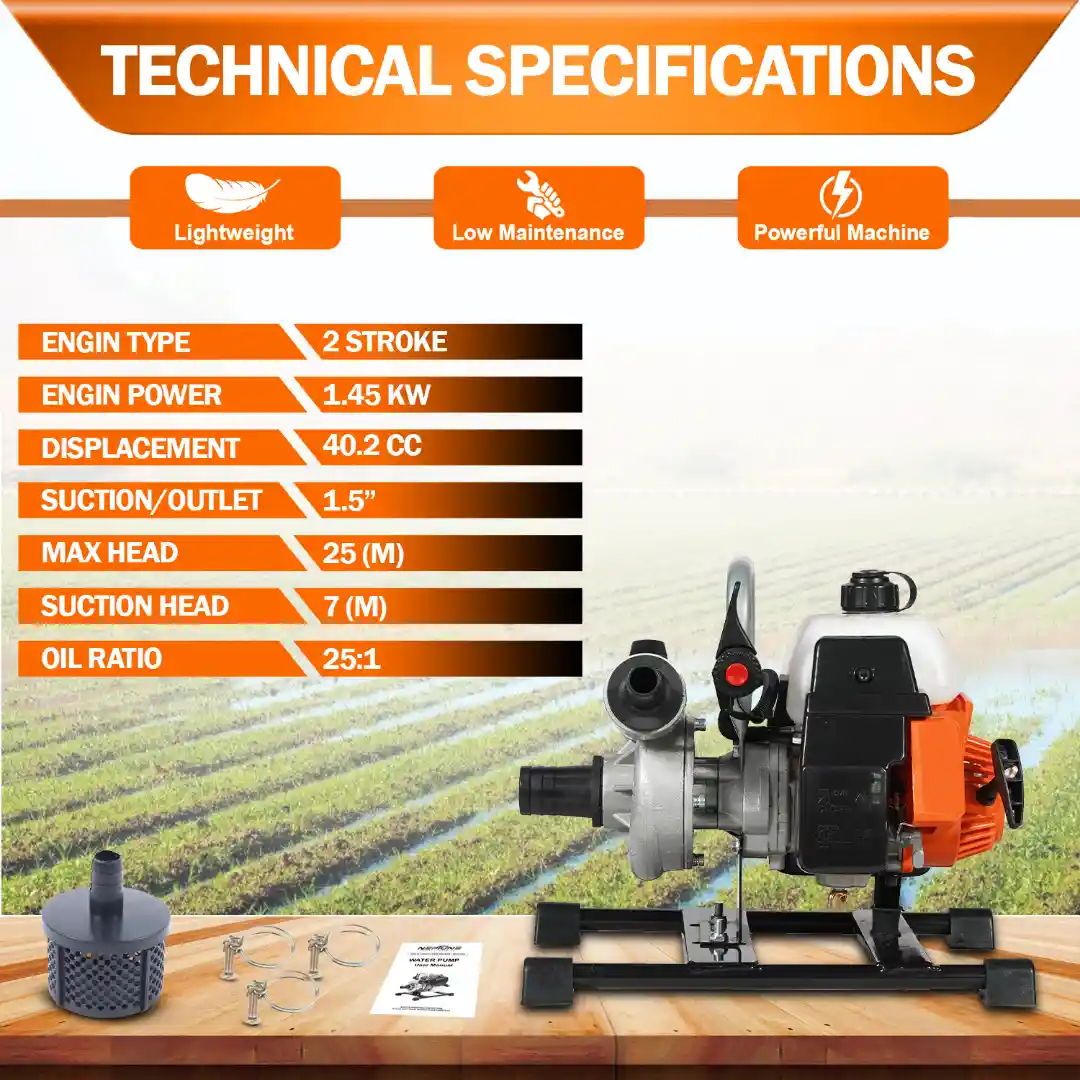 High-Performance 43CC Engine: Equipped with a powerful 2-stroke petrol engine for efficient water pumping.