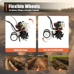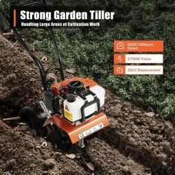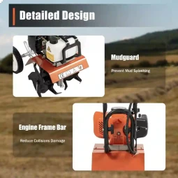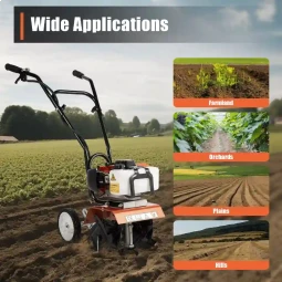 Powerful 2HP Engine: Equipped with a 52cc petrol engine delivering strong torque and consistent performance for tough soil conditions.