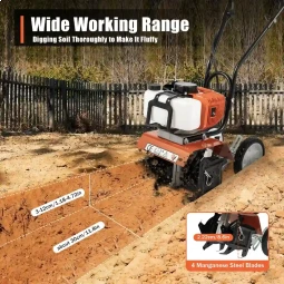 Efficient Tilling Depth & Width: Covers up to 10 inches width and 4 inches depth, ideal for garden beds, farms, and nurseries.