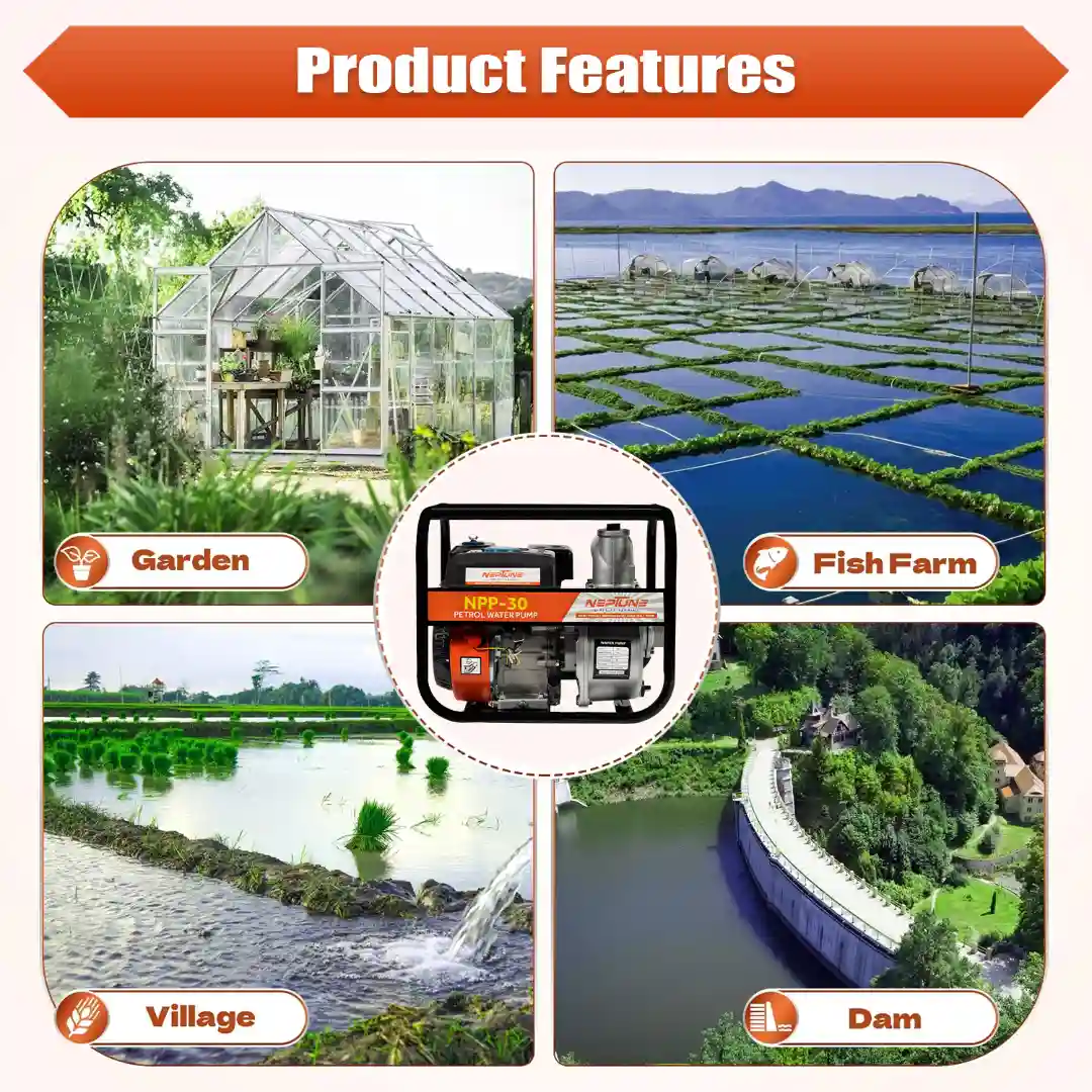 Versatile Applications: Ideal for irrigation, farm water supply, draining flooded areas, and gardening tasks.