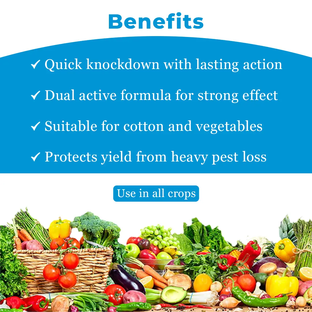 Quick-action: Systemic and contact action ensures quick knockdown of pests when they come in contact with the crops.