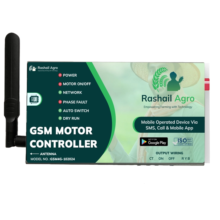 The Rashail GSM Motor Controller 4G PLUS is a smart farm automation device designed to control motors remotely using IVR, SMS, or a mobile app. With fast 4G connectivity optimized for Jio SIM, it delivers reliable performance even in remote agricultural regions. Perfect for large farms, it ensures uninterrupted irrigation, reduces labor costs, and offers safe, stable operation. The controller supports single and three-phase supplies and includes all accessories needed for easy installation.