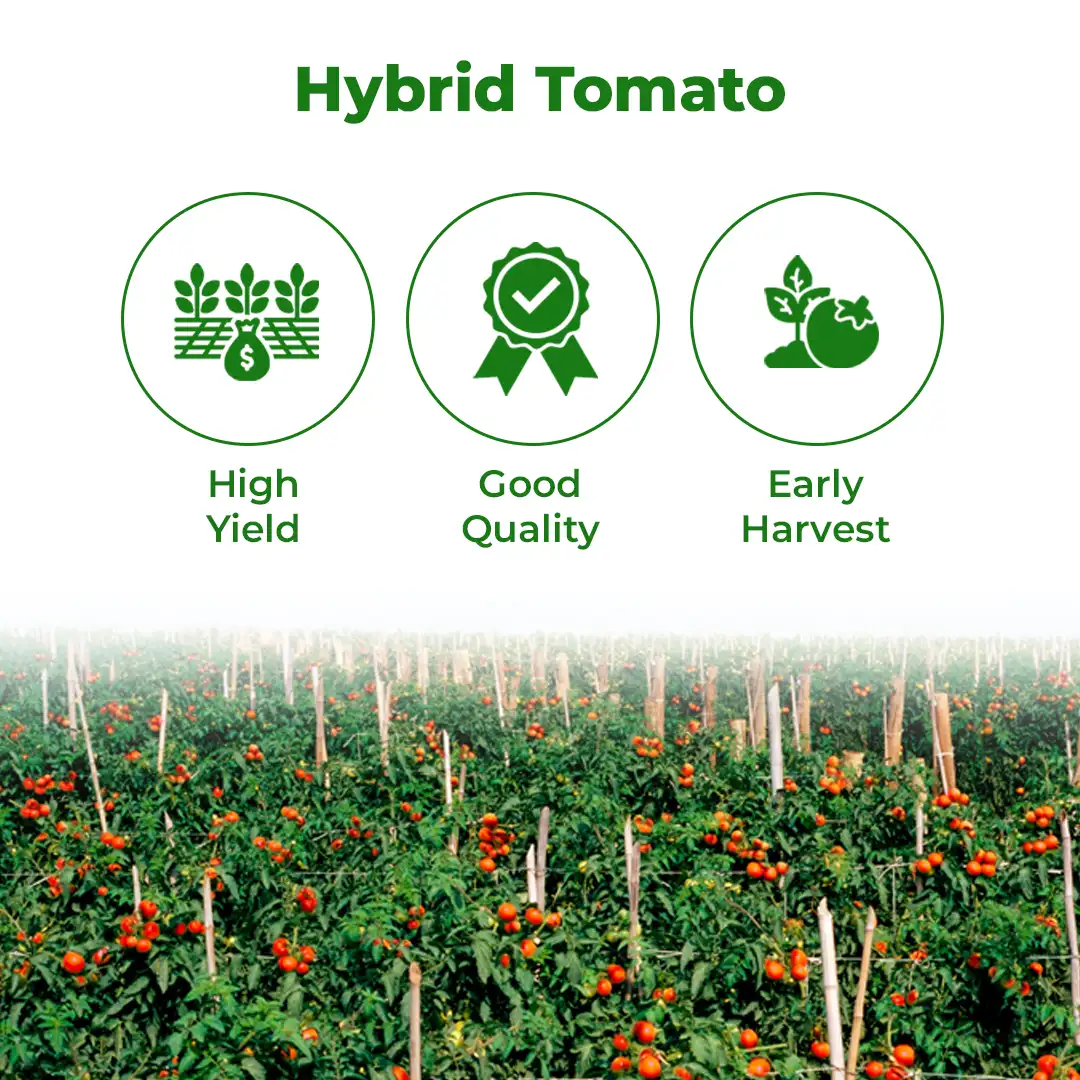 Hybrid tomato seeds provide crops with uniform size and shape, allowing easy harvest.