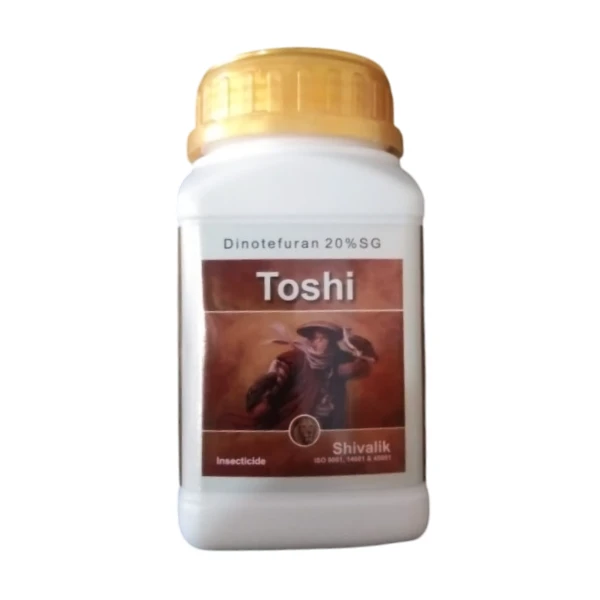 Shivalik Toshi Dinotefuran 20% SG Insecticide is a highly effective, broad-spectrum pest management solution designed for superior control of sucking and chewing pests. Powered by the advanced neonicotinoid molecule Dinotefuran, TOSHI acts systemically, protecting every part of the plant—from roots to leaves—against damaging insects. It ensures rapid knockdown, prolonged residual action, and improved crop vigor. Suitable for cotton, paddy, fruits, and vegetables, TOSHI helps farmers achieve cleaner, healthier, and more productive crops with fewer pest-related losses.