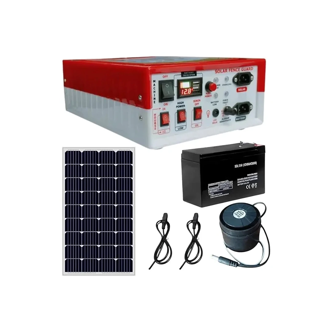 Urja 15 KV Digital Solar Fence Energizer Combo Set For 50 Acre With Battery 12V x 26Ah, Earthing Set And Solar Panel 40 Watt.