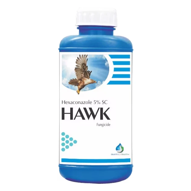 Smith Hawk Hexaconazole 5% SC is a highly effective systemic fungicide formulated to control a wide range of fungal diseases in crops such as paddy, mango, grapes, and groundnut. It provides both preventive and curative action by inhibiting fungal growth and preventing spore germination. The formulation ensures uniform coverage, quick absorption, and long-lasting protection. Regular application helps maintain plant health, improves yield, and ensures better crop quality.