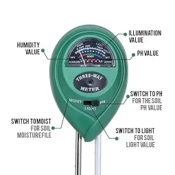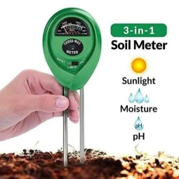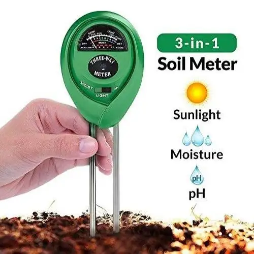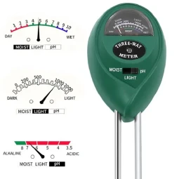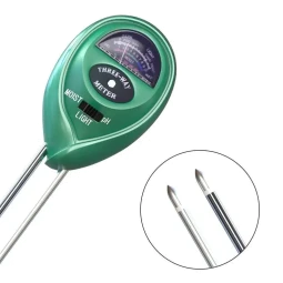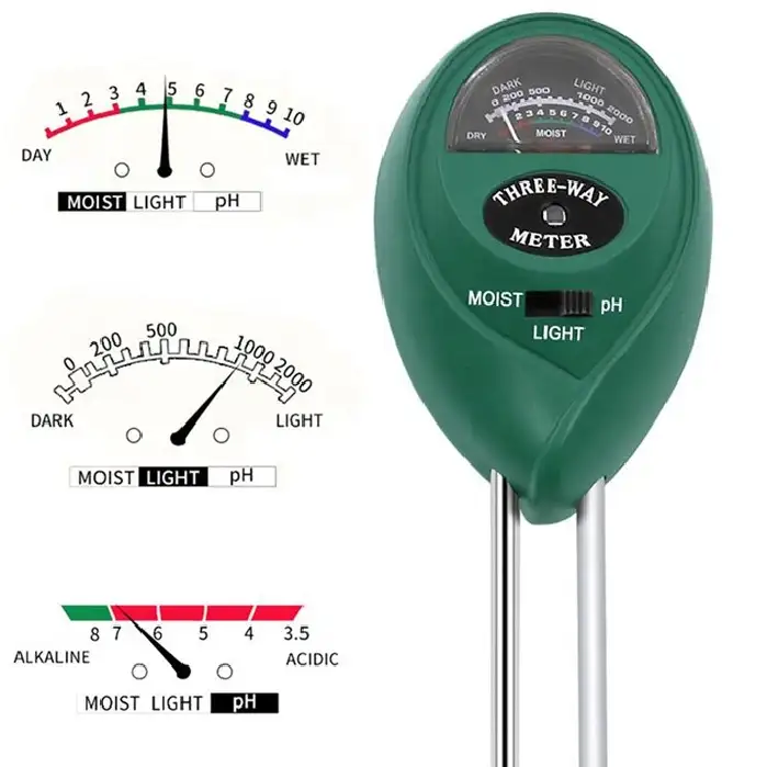 3-in-1 Function: Measures moisture, light intensity, and pH levels in soil.