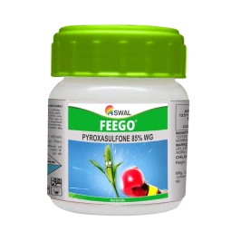 Swal Feego Pyroxasulfone 85% WG is a highly effective pre-emergent herbicide that controls a broad spectrum of annual grasses and broad-leaf weeds. It acts by inhibiting cell division and long-chain fatty acid synthesis in weed seedlings, preventing their emergence and growth. Ideal for use in wheat, maize, and soybean crops, Swal Feego ensures clean fields, better crop establishment, and higher yield potential with long-residual weed control.