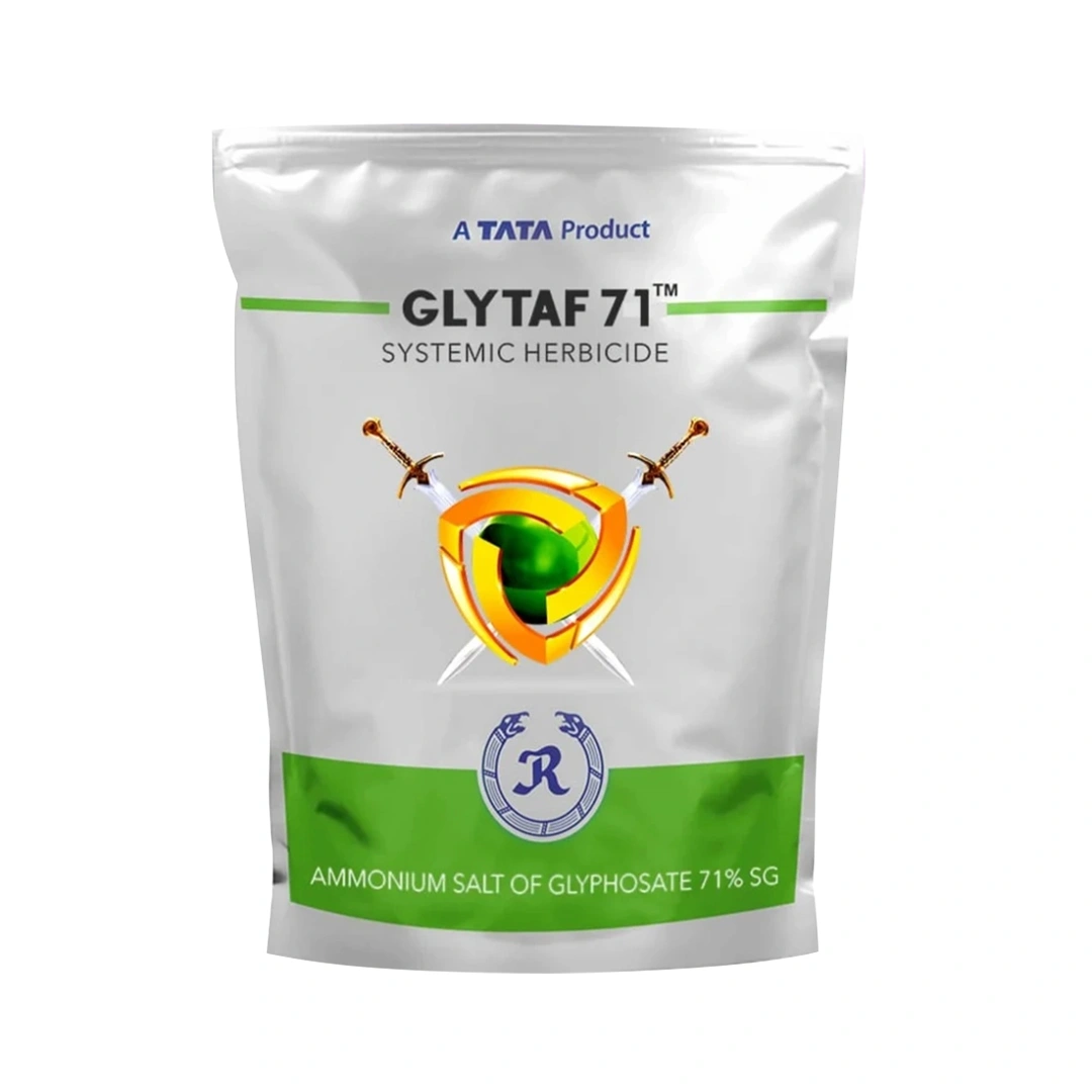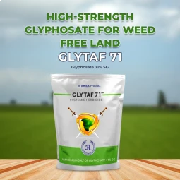Tata Rallis Glytaf is a strong systemic herbicide containing ammonium salt of Glyphosate 71% SG, which ensures broad-spectrum protection from various harmful weeds for healthy crop growth. This weed relief remedy can clear large areas of land with ease due to its systemic and non-selective nature.