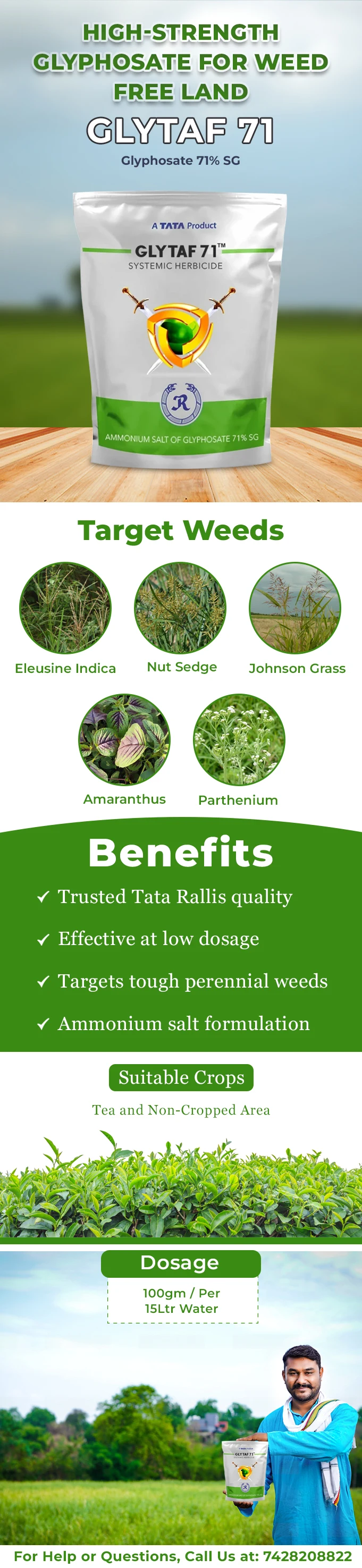 Easy to Use: Tata glytaf 71 can be easily mixed with water and applied through foliar sprayers for convenient usage.
