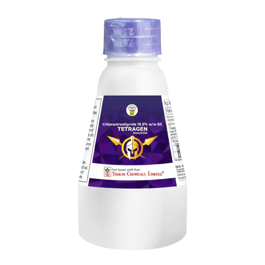 Thakar TETRAGEN is a modern broad-spectrum insecticide formulated with Chlorantraniliprole 18.5% SC for effective control of lepidopteran larvae. It belongs to the anthranilic diamide group and acts quickly on insect muscle function, leading to feeding cessation and death. TETRAGEN offers rapid action, high insecticidal potency, and long-lasting residual control. Its suspension concentrate formulation ensures easy application, excellent crop safety, and minimal impact on non-target organisms, making it ideal for sustainable pest management programs.
