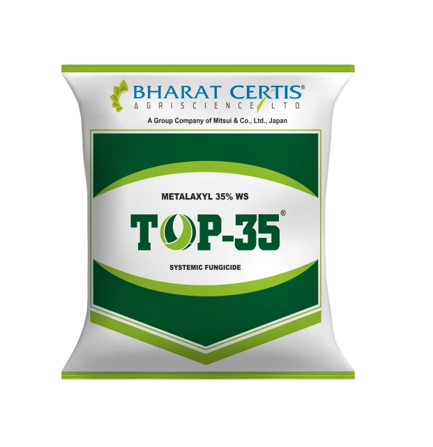 Bharat Top-35 is a highly effective systemic fungicide containing Metalaxyl 35% WS, specially designed for seed treatment applications. It provides long-lasting protection against downy mildew and other seed and soil-borne fungal diseases. The product works internally by being absorbed into the seed and developing plant, ensuring healthy germination and early crop establishment. It is widely recommended for crops like maize, sorghum, bajra, sunflower, and mustard to protect seedlings and improve crop productivity.