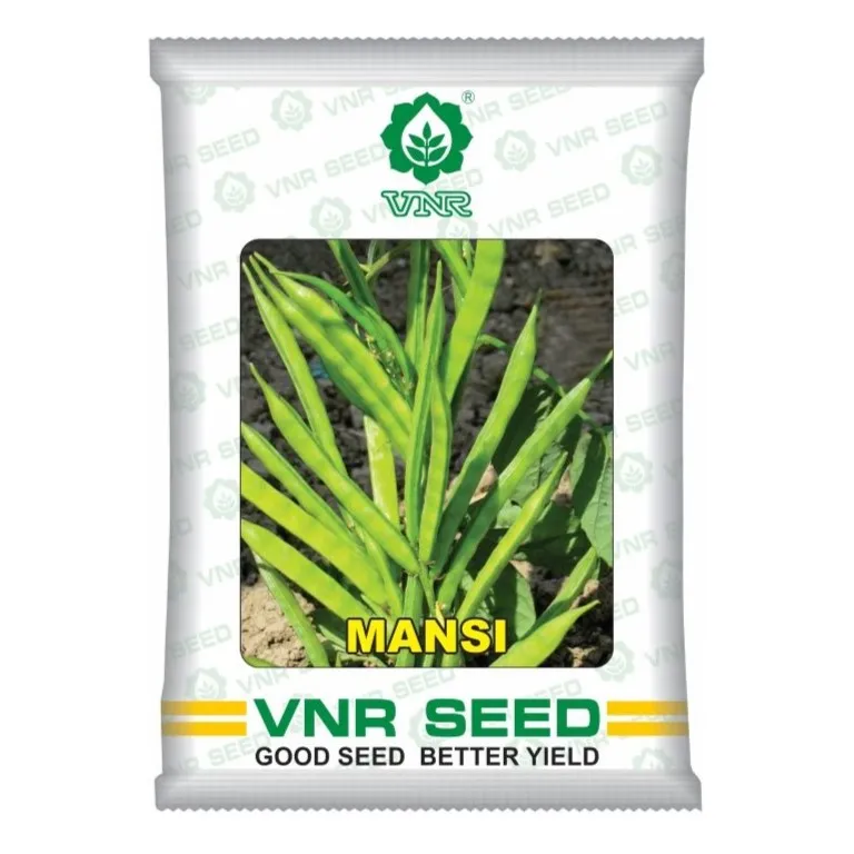 VNR Seeds Mansi Cluster Bean is a reliable open-pollinated variety developed for high yield and superior pod quality. The plants produce attractive light green, straight, and erect pods measuring 10-13 cm in length. The pods are tender with excellent cooking quality, making them highly suitable for fresh vegetable markets. This variety matures early with the first harvest available in 55-60 days after sowing. Mansi Cluster Bean adapts well to different agro-climatic conditions and ensures consistent performance for farmers.