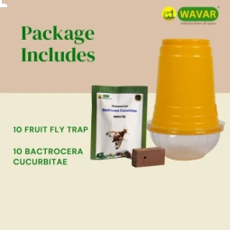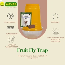 Wavar Fruit Fly Trap with Cucurbitae Lure is a reliable and eco-friendly solution for controlling the melon fruit fly (Bactrocera cucurbitae), one of the most damaging pests in cucurbit crops. Designed with a sturdy body and a lure that lasts up to 45-60 days, this trap effectively attracts and traps fruit flies, reducing crop damage and increasing yield quality. It is suitable for a wide range of cucurbit crops including cucumber, gourds, melons, and pumpkins. Easy to use and highly efficient, the Wavar Fruit Fly Trap minimizes pesticide use, making farming safer, sustainable, and more profitable.